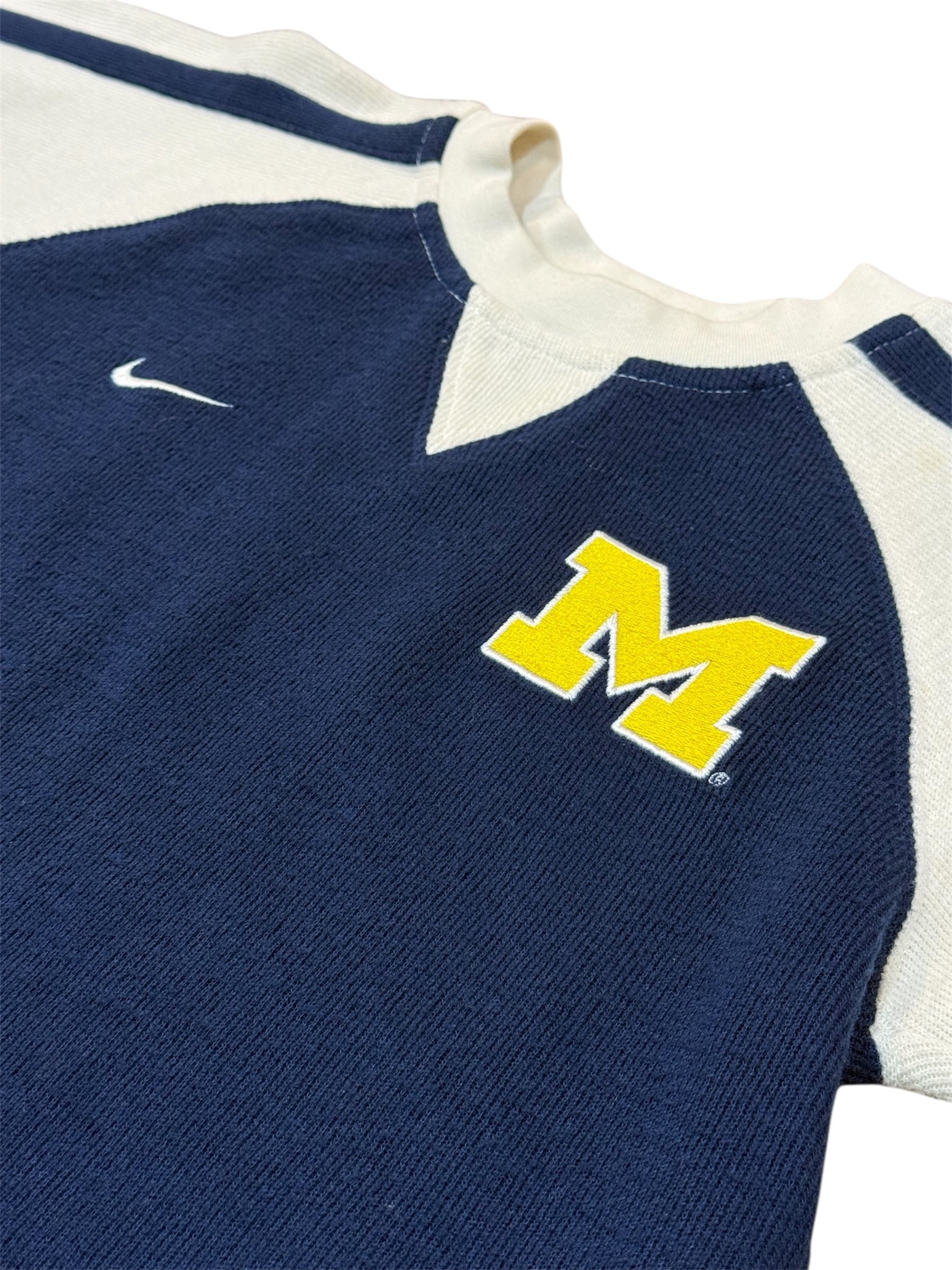 NIKE TEAM製のしっかりとした生地感に、胸の"M"ワッペン。カレッジ物の王道がギュッと凝縮されたような、非常に雰囲気の良いキッズサイズ(表記S)の一着です。