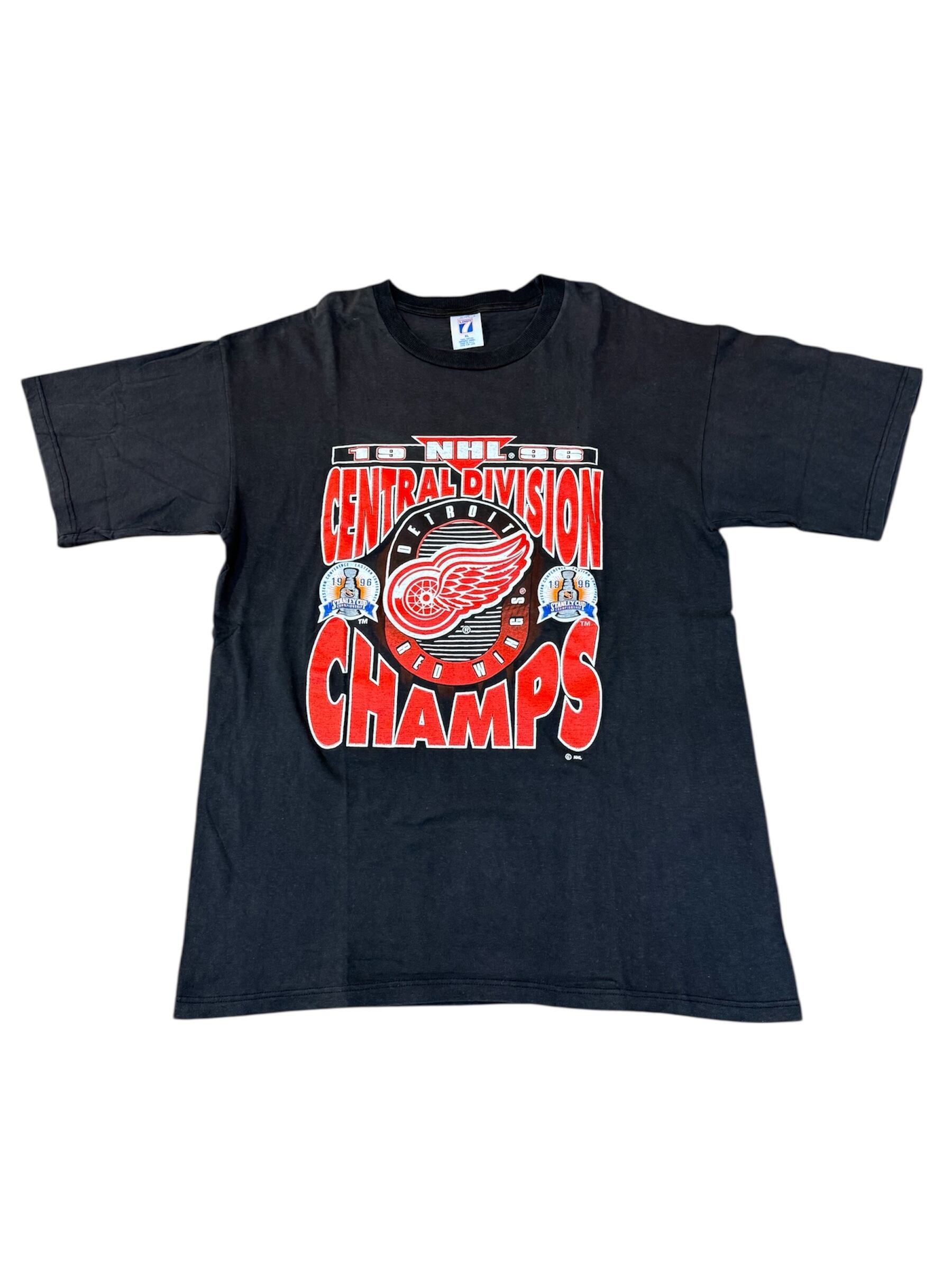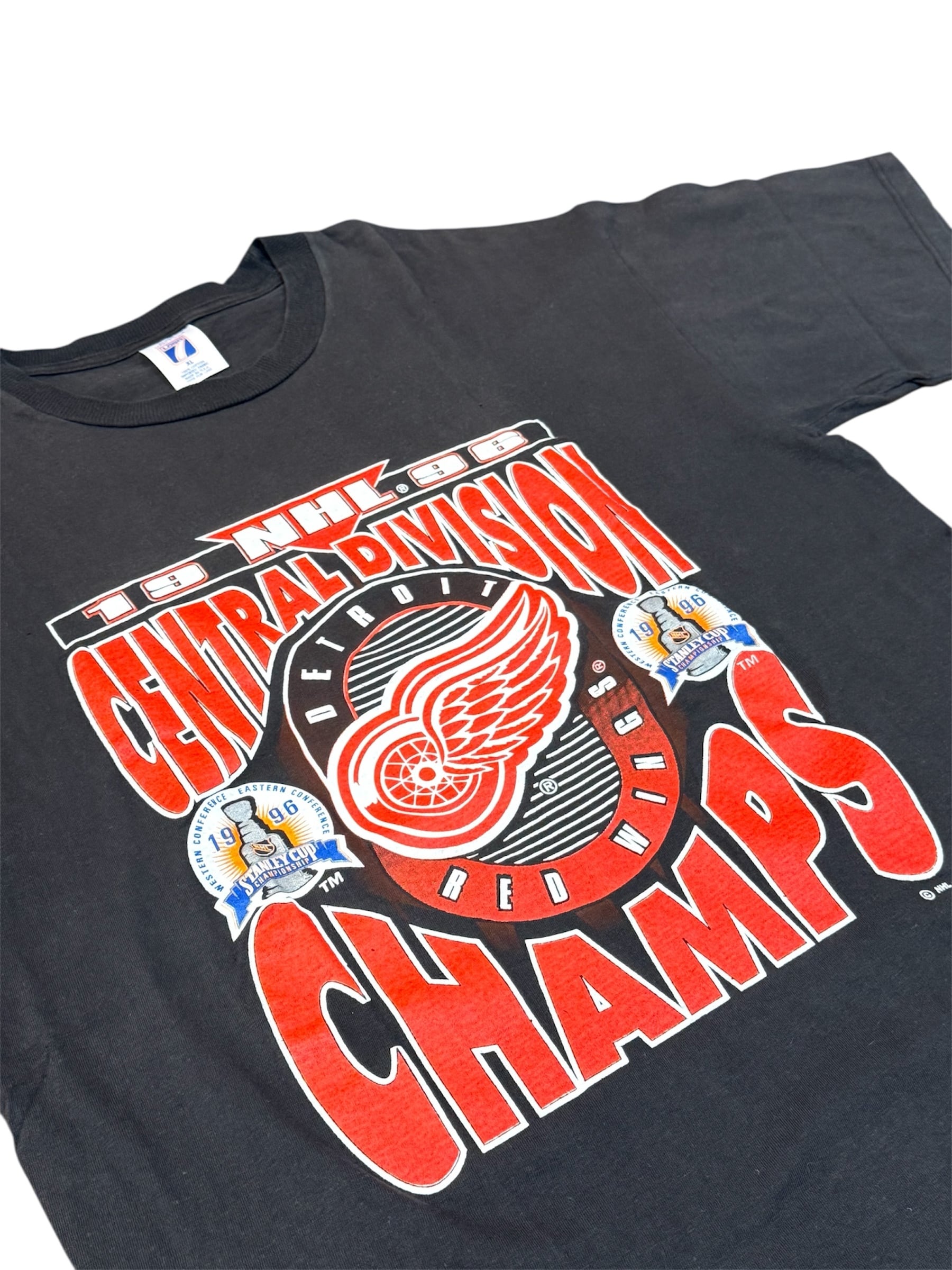 NHLの名門、デトロイト・レッドウィングスが1996年にセントラル・ディビジョンを制した際のチャンピオン記念Tシャツです。