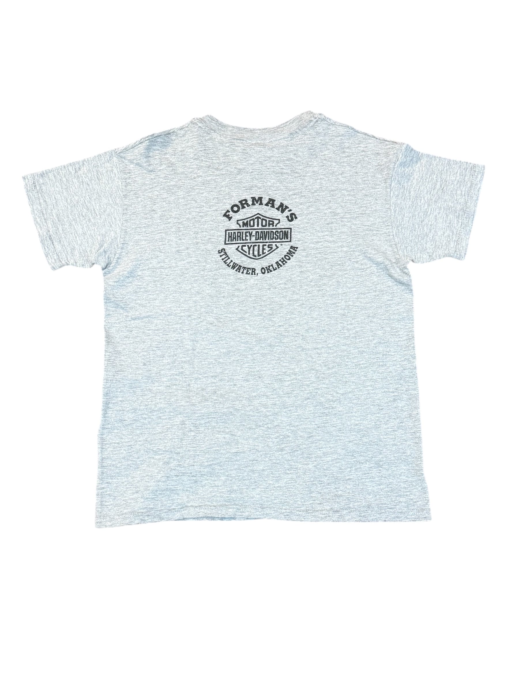 バックにはオクラホマ州スティルウォーターのショップロゴが入る豪華な両面プリント仕様。ボディは厚手でタフな「Hanes BEEFY-T」